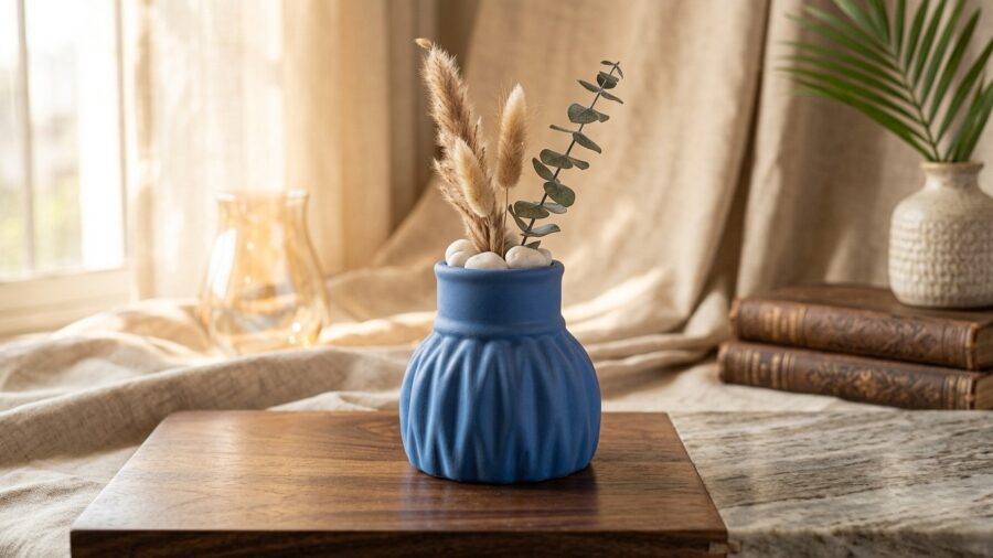 Aqua Blue Fluted Ceramic Pot – Modern Decorative Flower Vase & Indoor Planter