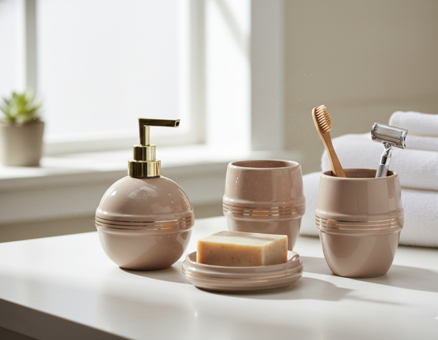 Ceramic Bathroom Accessories Set Mud Cream (4 Pc) – Bella