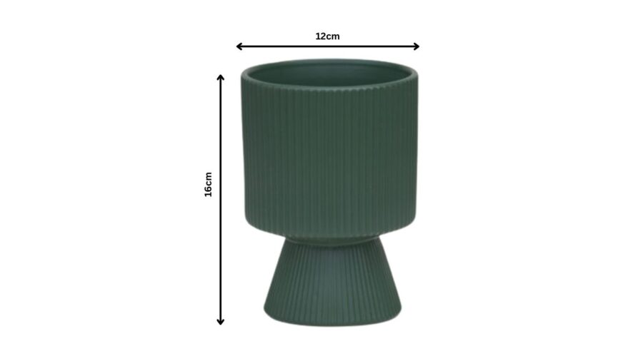 Add a touch of sculptural sophistication to your space with this pedestal-style fluted ceramic planter. Designed with clean vertical lines and a matte finish, it brings effortless elegance to any modern, Scandinavian, or minimalist setting. The elevated conical base gives it a gallery-like aesthetic — making it a perfect accent piece for coffee tables, consoles, or open shelves.