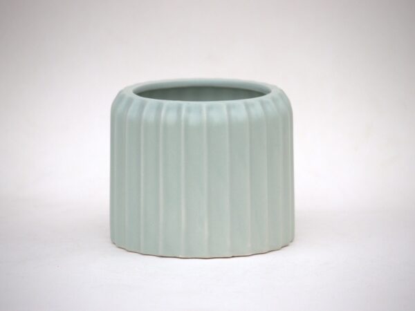 Refresh your space with this modern ribbed ceramic flower pot in a soothing mint green finish, designed to bring a subtle pop of color while maintaining a clean, minimal aesthetic. The elegant ribbed texture adds depth and character, making it a perfect statement piece for contemporary interiors.