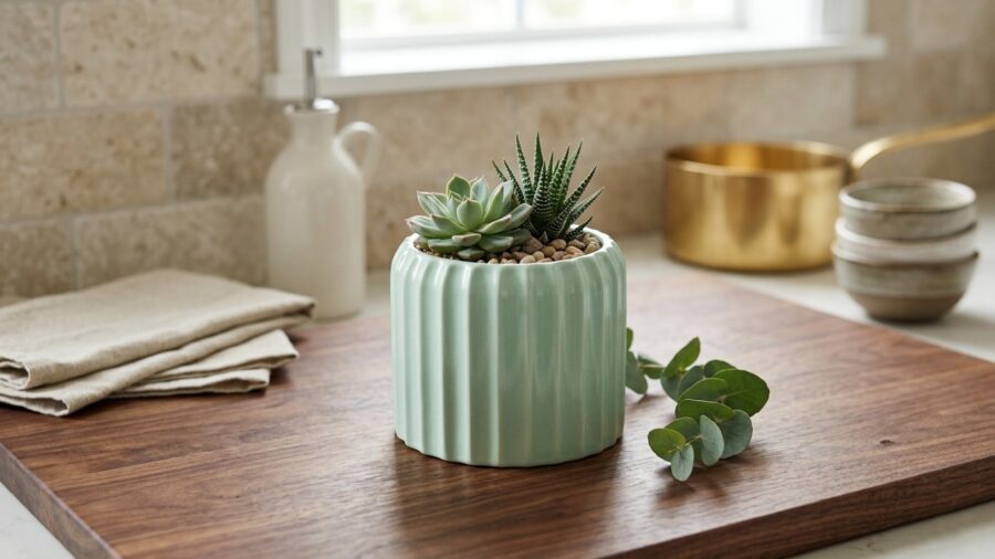 Modern fluted Ceramic Flower Pot – Mint Green Decorative Vase