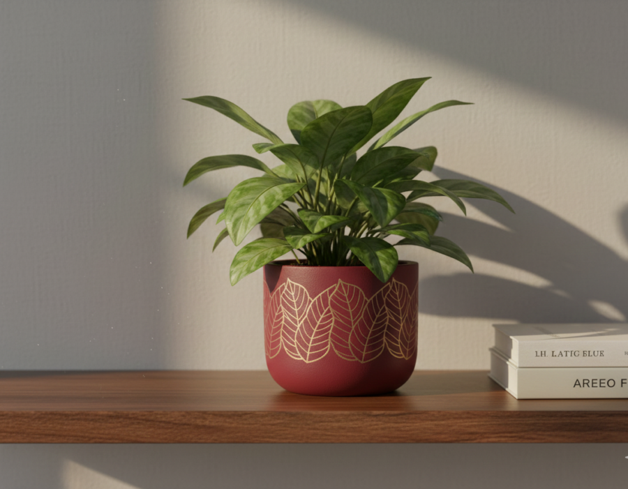Earthen Flower Pot – red golden leaf