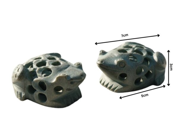 Bring charm and artistry to your home décor with these Handcrafted Soapstone Frog Figurines featuring intricate jali carving. Expertly made by skilled artisans, each frog showcases delicate hand-carved detailing with hollow lattice work that highlights the beauty of traditional craftsmanship.