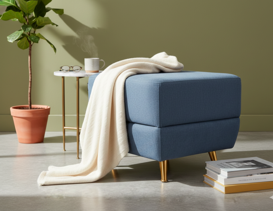 This modern ottoman can be a perfect addition to your room. Due to its flat surface and high density foam, it is really comfortable to sit on. Its jeans looking fabric makes it really eye-catching.