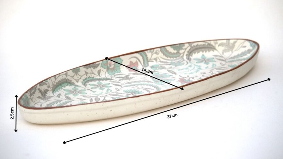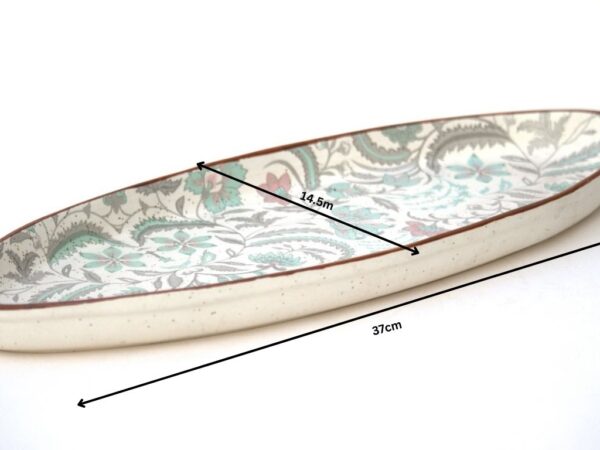 Make a bold statement on your table with our oval ceramic platter featuring elegant prints, where handcrafted design meets functional beauty. With its elongated oval shape and carefully detailed surface patterns, this piece is perfect for serving appetizers, desserts, snacks, rice pulao or main dishes with flair.