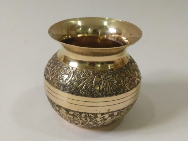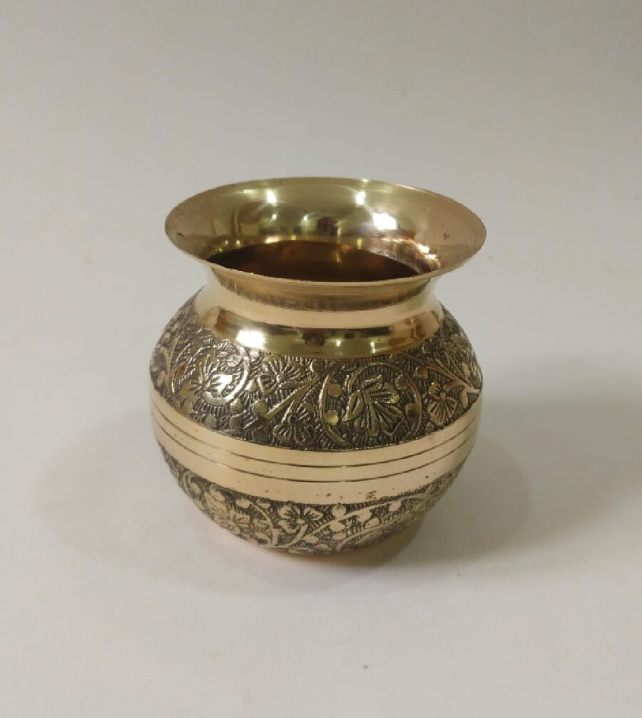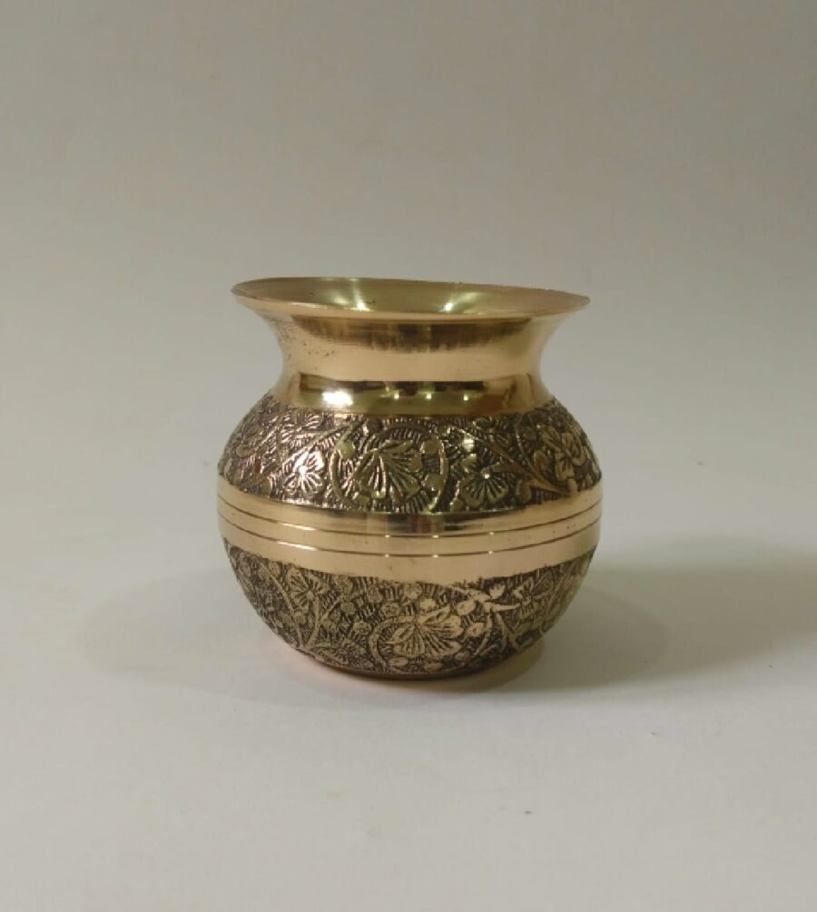 Enhance the beauty and sanctity of your pooja setup with this pure brass meenakari puja kalash, a perfect blend of traditional significance and artistic craftsmanship. Adorned with intricate meenakari work, this kalash adds a vibrant and elegant touch to your spiritual rituals.