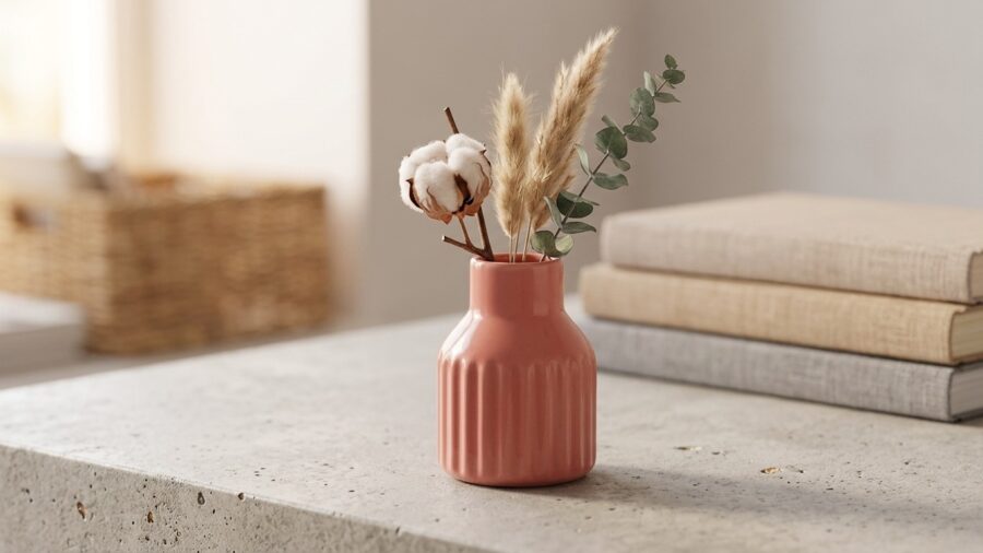 Rust Red Fluted Ceramic Vase – Modern Decorative Tabletop Flower Vase