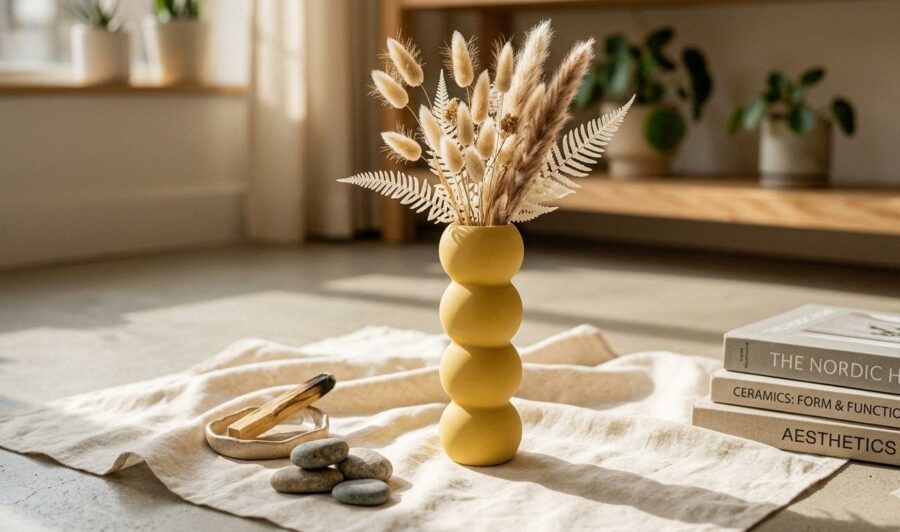 Whether you’re styling your home or looking for a thoughtful gift, this decorative vase brings effortless charm and sophistication to any space. Ideal for pampas grass, dried flowers, or artificial arrangements, this vase works beautifully as a center table accent, shelf décor, bedside styling piece, or console highlight. The warm yellow tone adds a refreshing pop of color, making it perfect for modern, bohemian, and Scandinavian-inspired interiors.